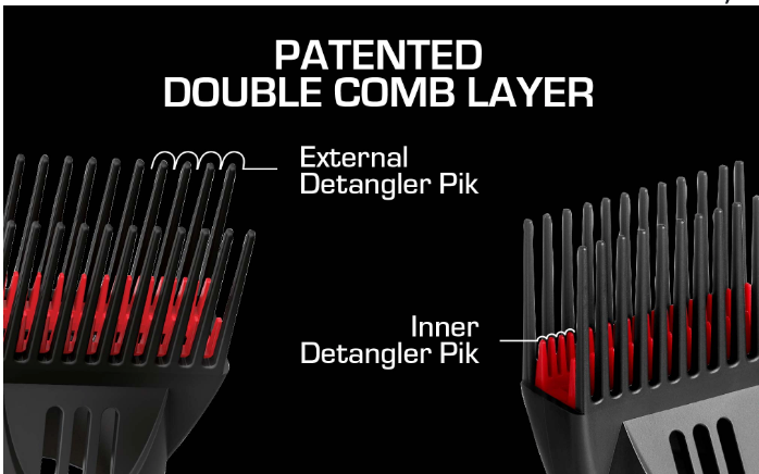 - Comes with additional styling attachments: 1 patented double-layered detangler pik, 1 single-layered detangler pik, and 1 air concentrator